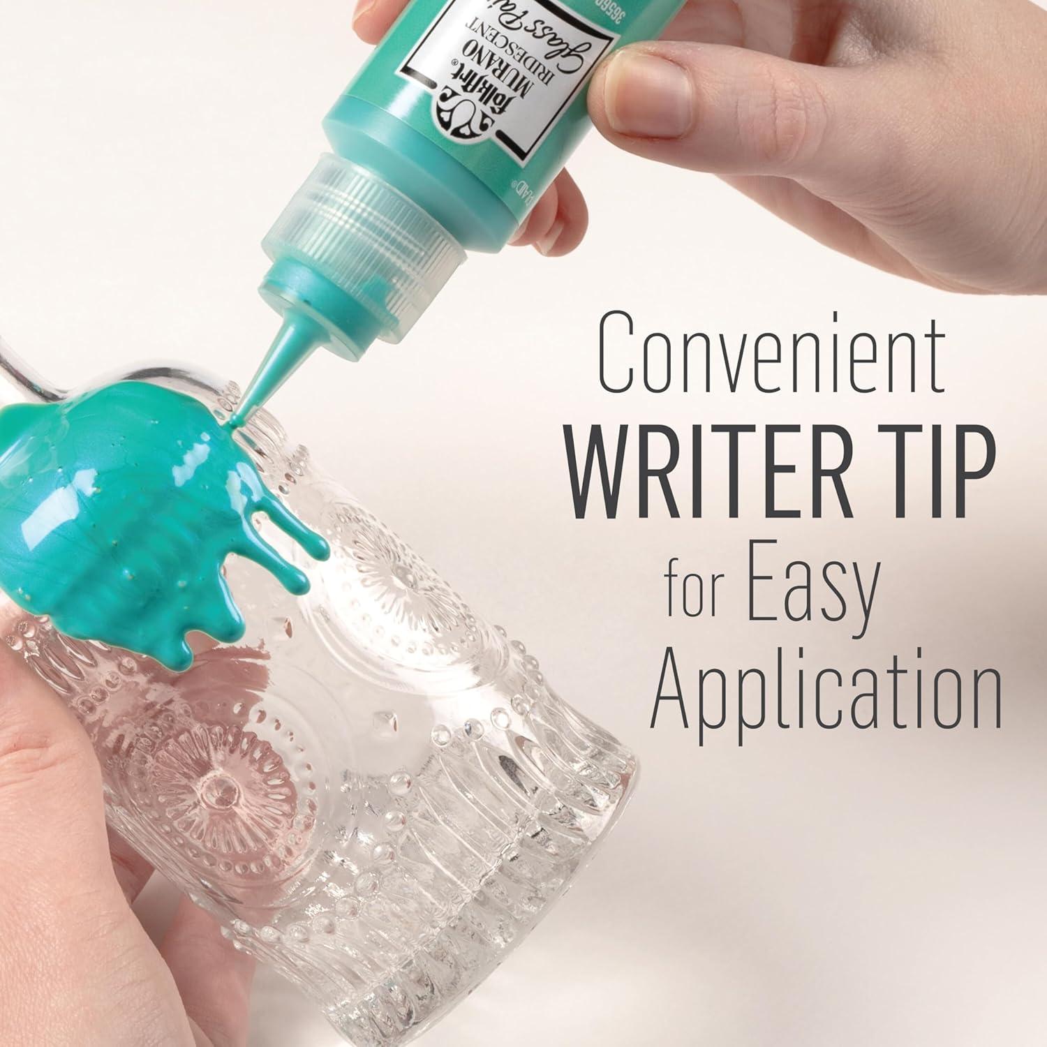 Transform glass surfaces with FolkArt Murano Opaque glass paint. Its versatility allows you to transform ordinary glass objects into personalized décor and works of art. Whether you're revamping old glassware, upcycling, or designing unique ornaments, Murano Opaque empowers you to explore your own unique style. Explore various glass painting techniques from pouring, swirling, and dripping – right from the bottle. Squeeze the paint directly from the applicator or brush on with soft white bristles. Paint bottle features a writer’s tip that allows for precision and getting into the details. Murano Opaque is formulated to be user-friendly and long-lasting. The paint adheres to glass surfaces, providing smooth and even coverage. Use it on indoor and outdoor DIY projects!