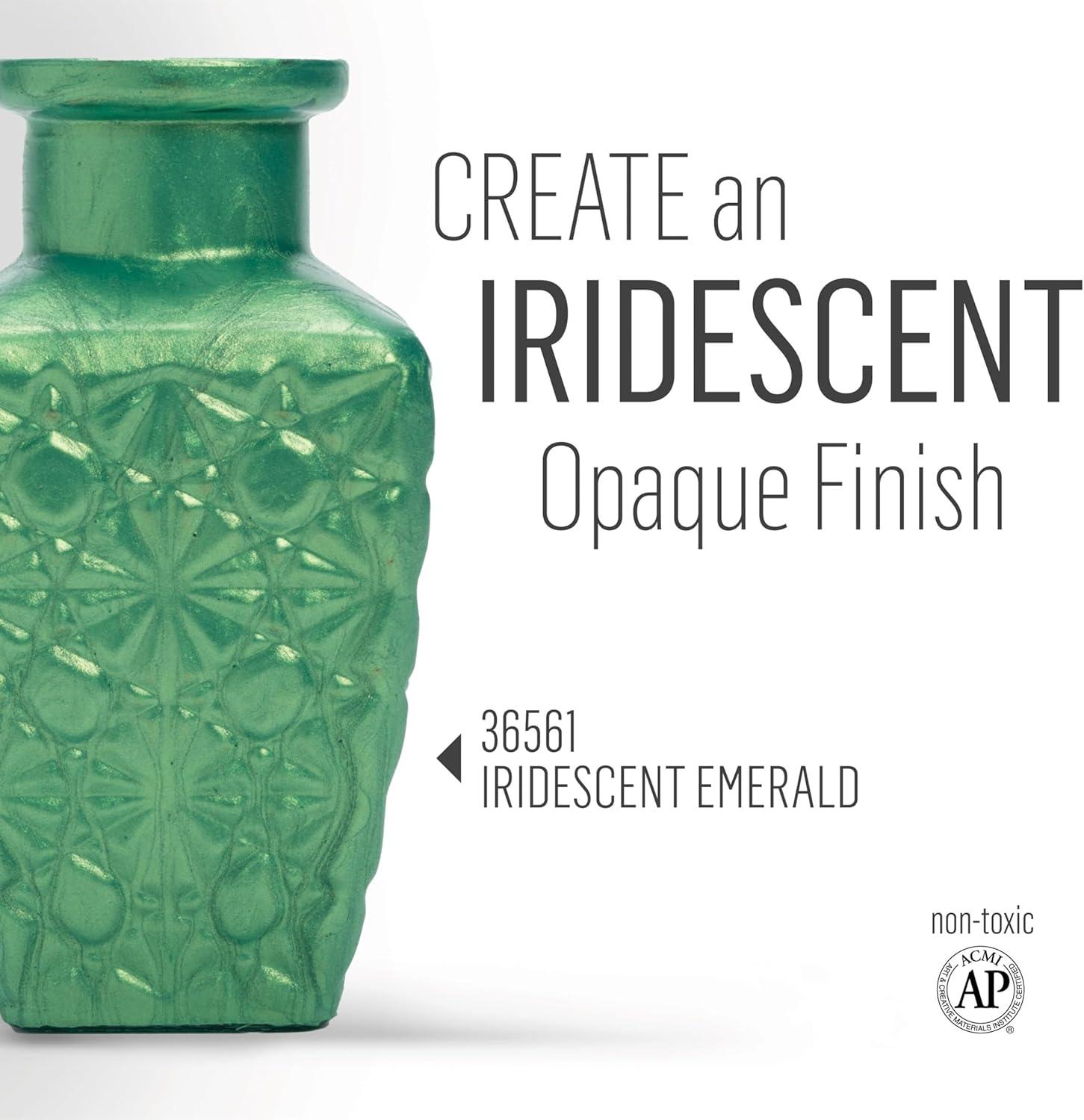 FolkArt Murano Opaque Acrylic Glass Paint, Ultra Blue, Perfect for Indoor and Outdoor Arts and Crafts Projects, 2 fl oz(Iridescent Emerald)