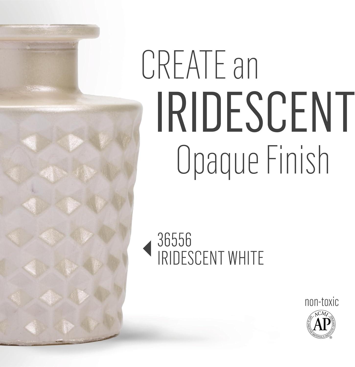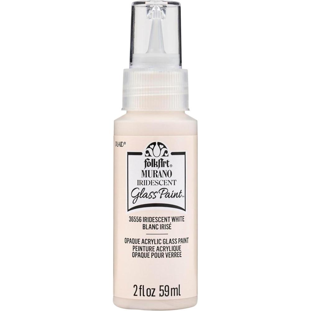 FolkArt Murano Opaque Acrylic Glass Paint, Ultra Blue, Perfect for Indoor and Outdoor Arts and Crafts Projects, 2 fl oz(Iridescent White)