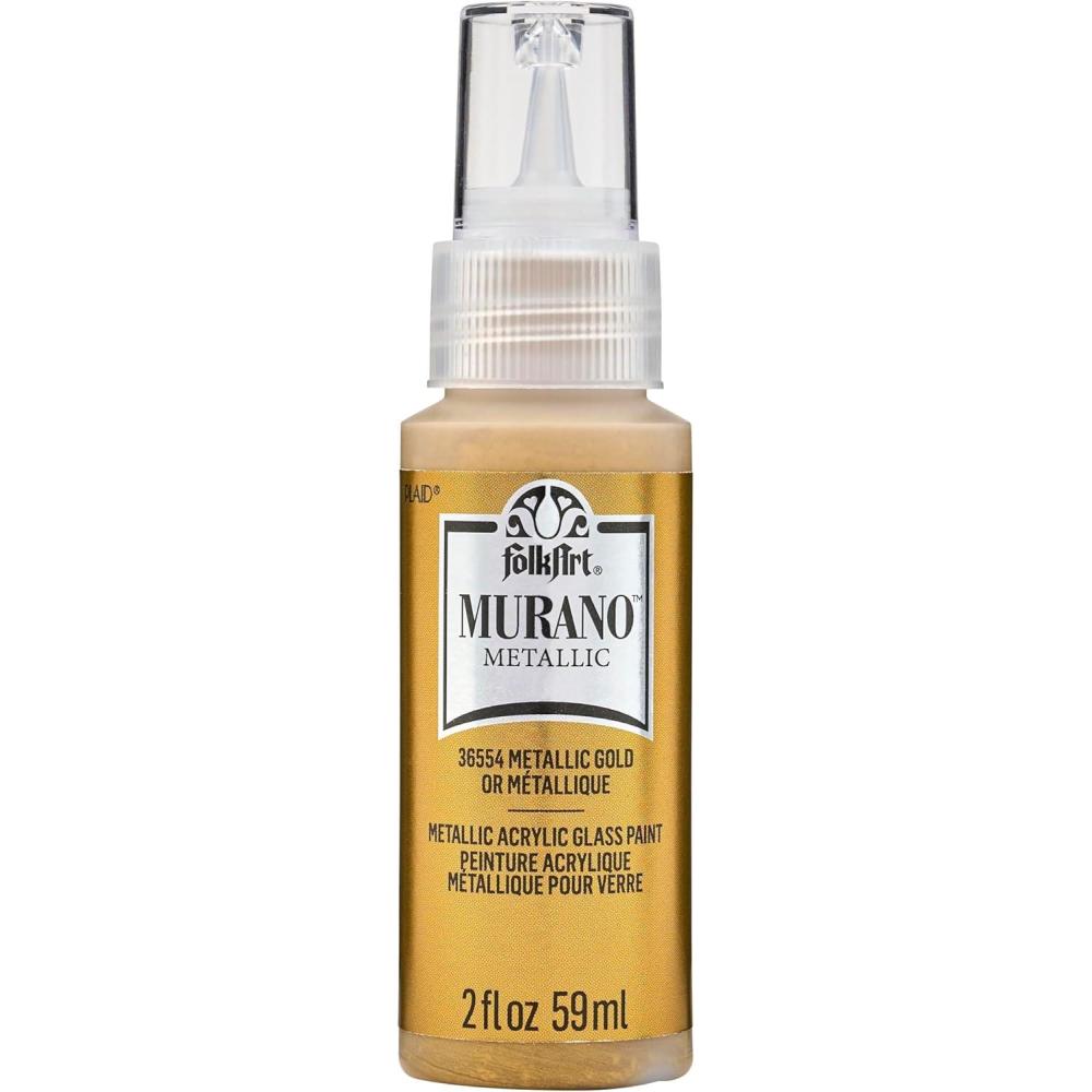 FolkArt Murano Opaque Acrylic Glass Paint, Ultra Blue, Perfect for Indoor and Outdoor Arts and Crafts Projects, 2 fl oz(Metallic Gold)