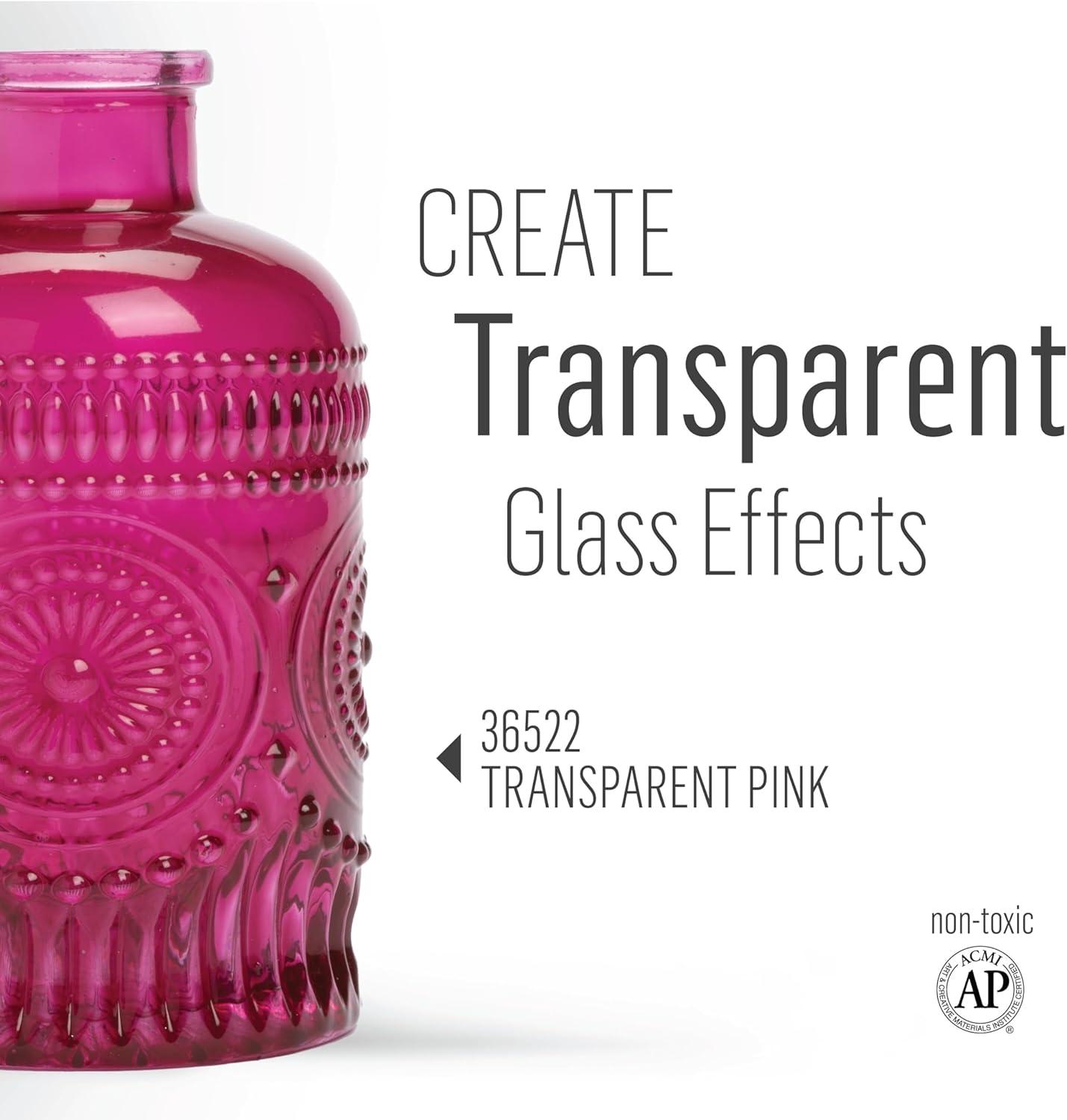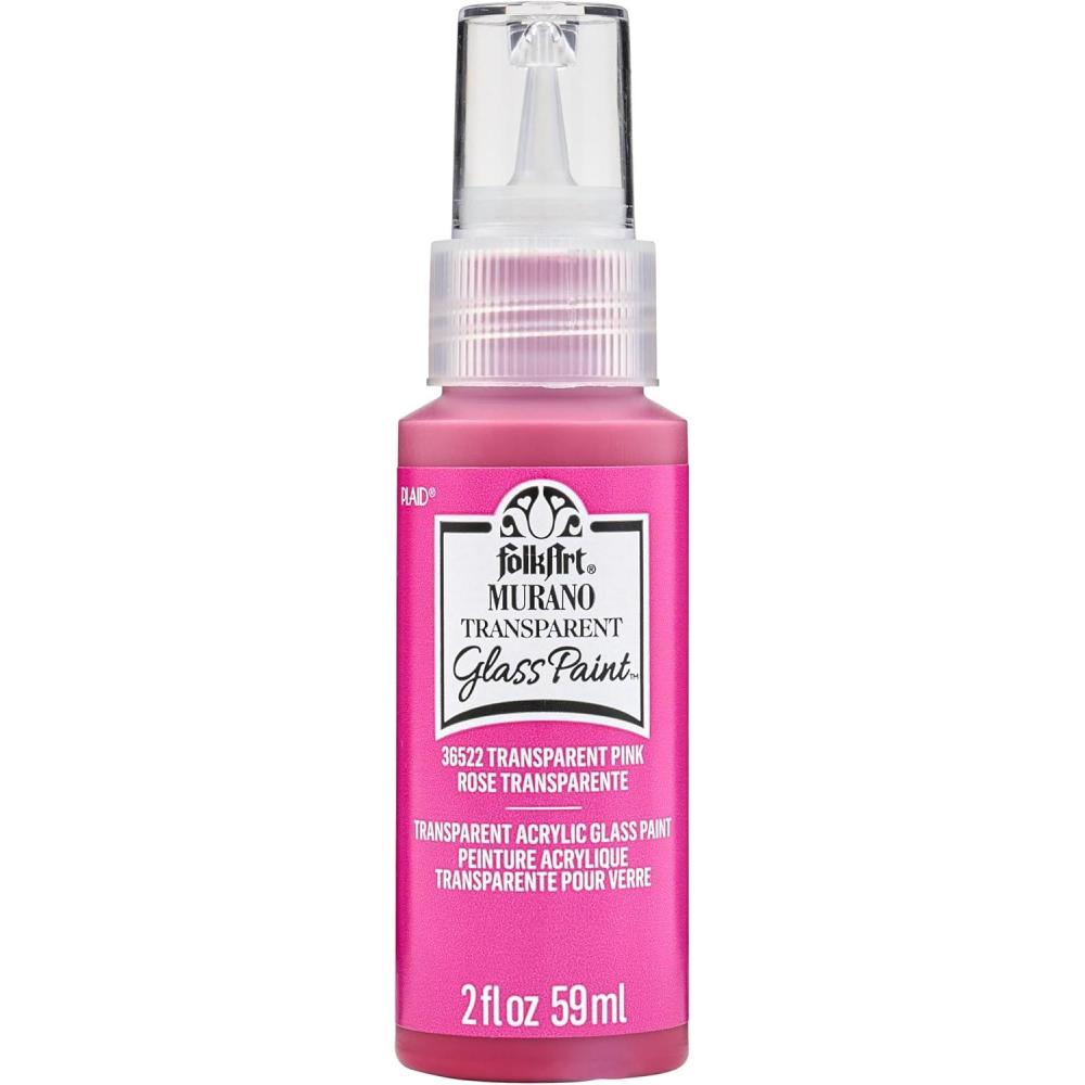 FolkArt Murano Opaque Acrylic Glass Paint, Ultra Blue, Perfect for Indoor and Outdoor Arts and Crafts Projects, 2 fl oz(Transparent Pink)