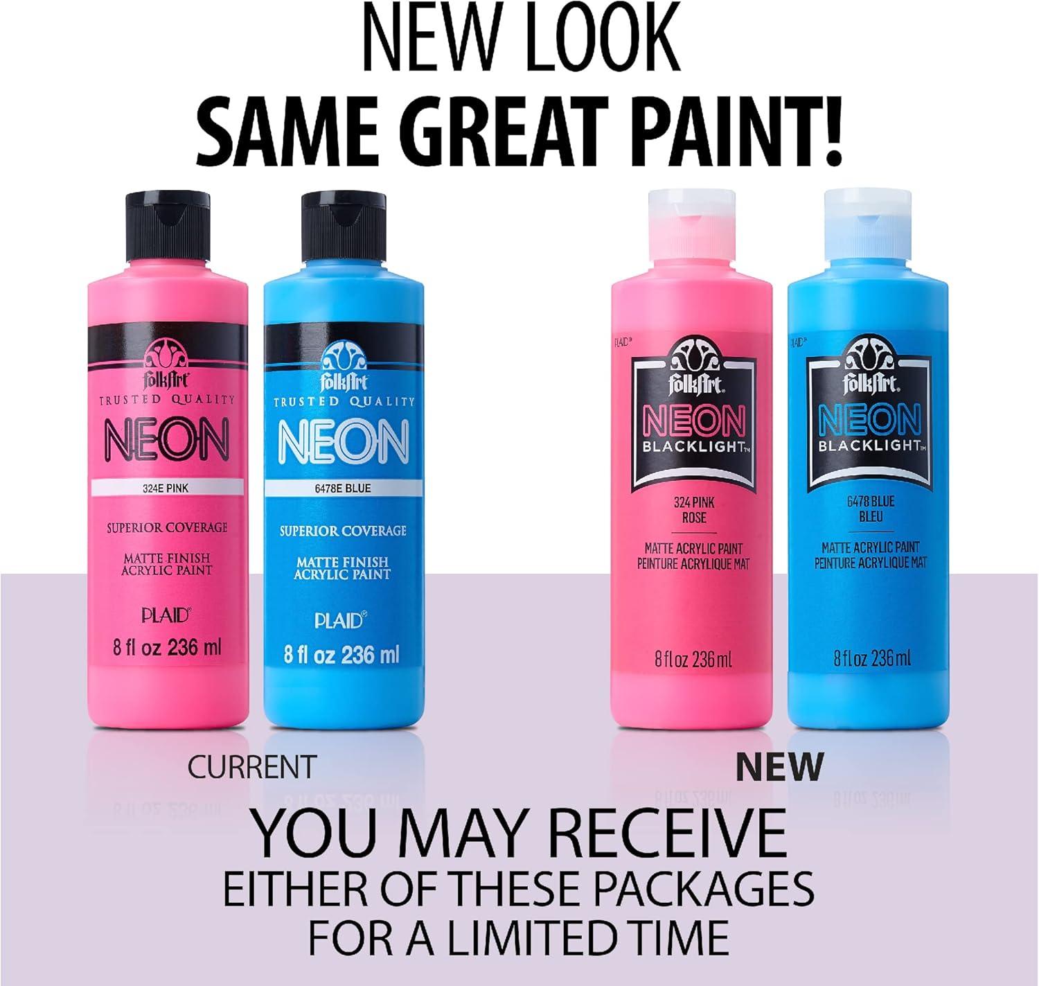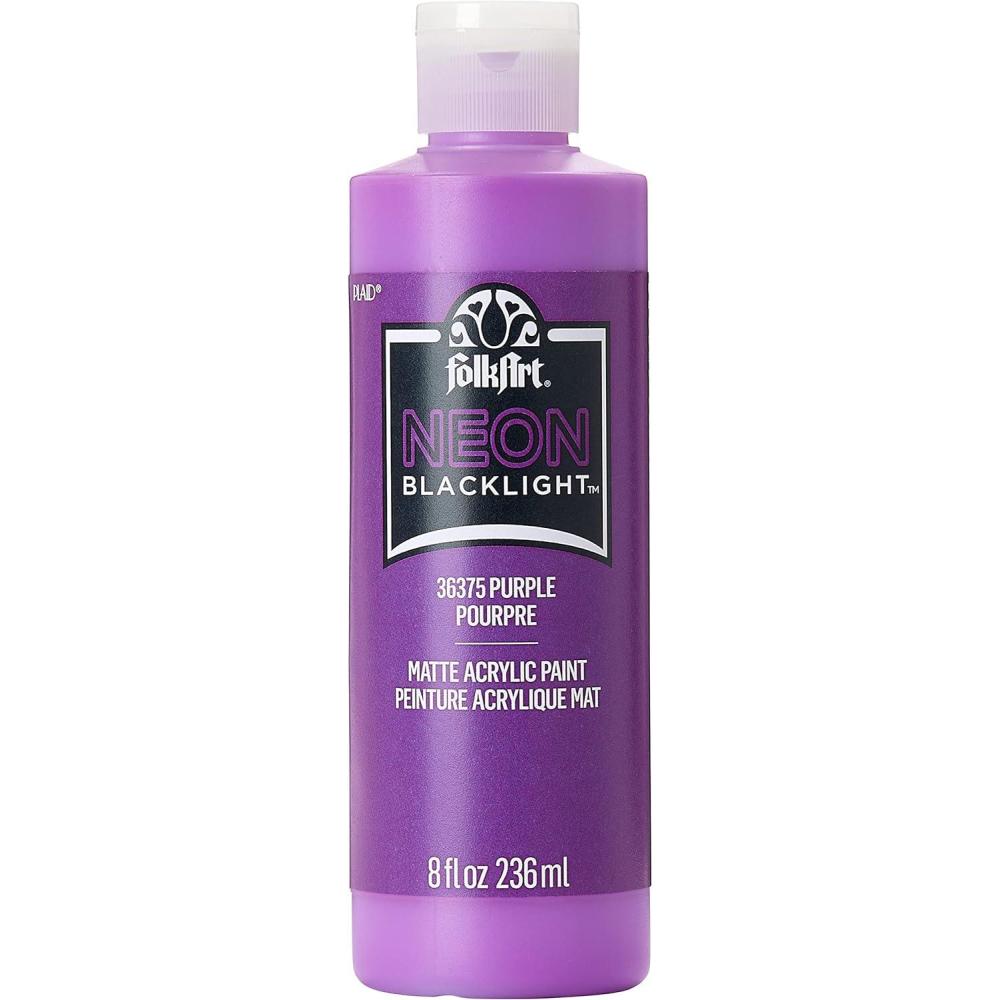 Give your projects a bold burst of color with FolkArt Neon Acrylic Paint. The vivid, fluorescent colors of this line of vibrant paints will give your projects a brilliant neon finish. This color glows brightly under a blacklight while appearing as a bright neon color in normal light. Use on a variety of surfaces such as wood, canvas, fabric, terra cotta, metal and more. With this neon acrylic paint, you can do everything from intricate detail work to stenciling for a fresh look to all your DIY projects. Great for parties, home decor, kid's projects, seasonal crafts, and more. Make your arts and crafts pop with FolkArt Neon Acrylic Paint!