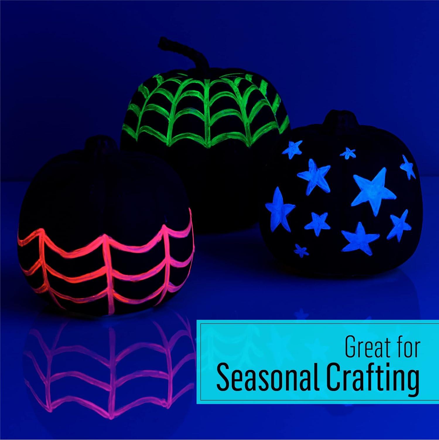 NEON FINISH – This brilliant acrylic paint dries to a smooth neon finish that glows brightly under a blacklight while appearing as a bright neon color in normal light – perfect for adding a pop of color to all your arts and crafts!