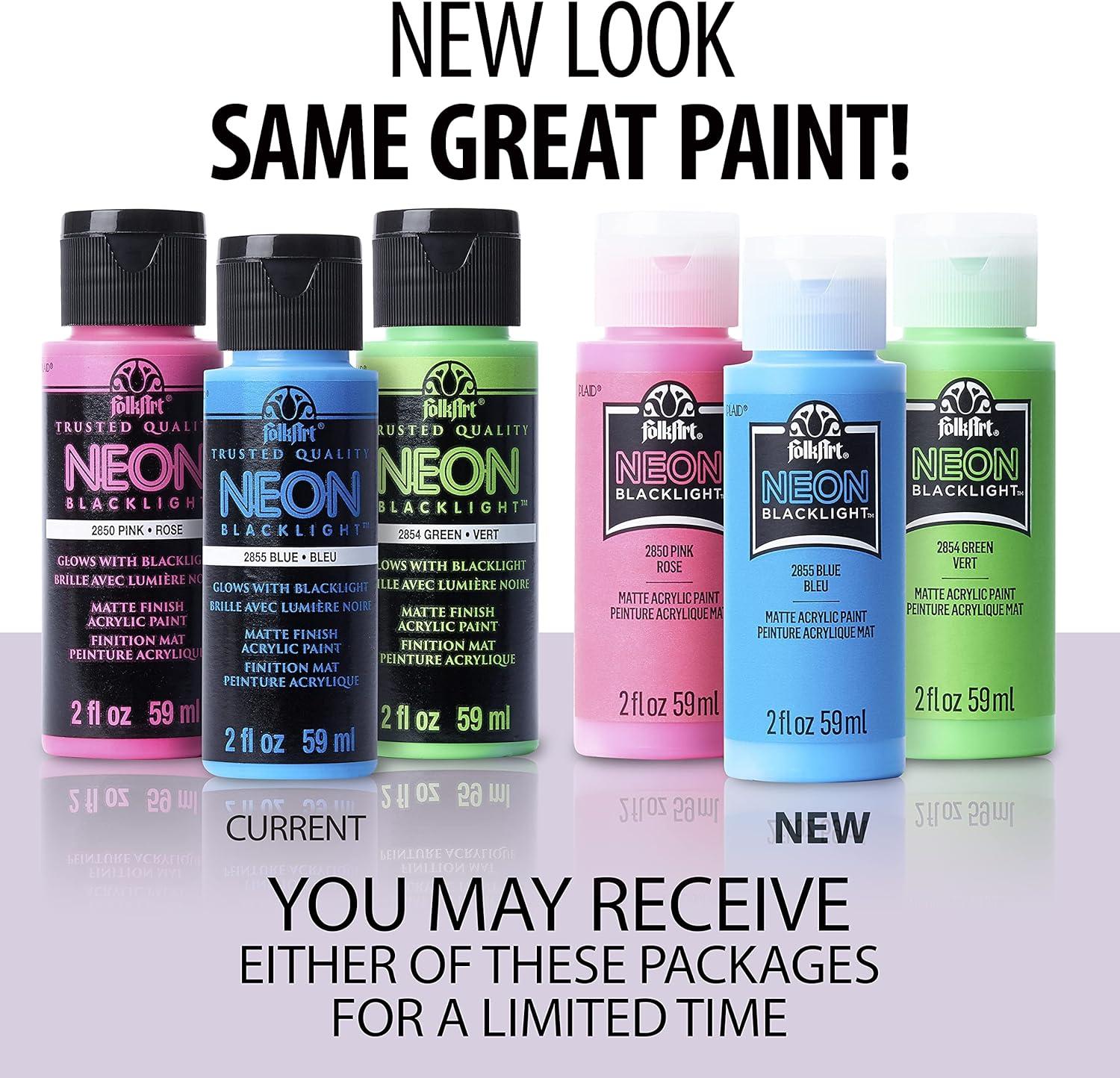 FolkArt Purple Neon Acrylic Paint in Assorted Colors (2 Ounce), 2856, Neon Purple(Neon Green)